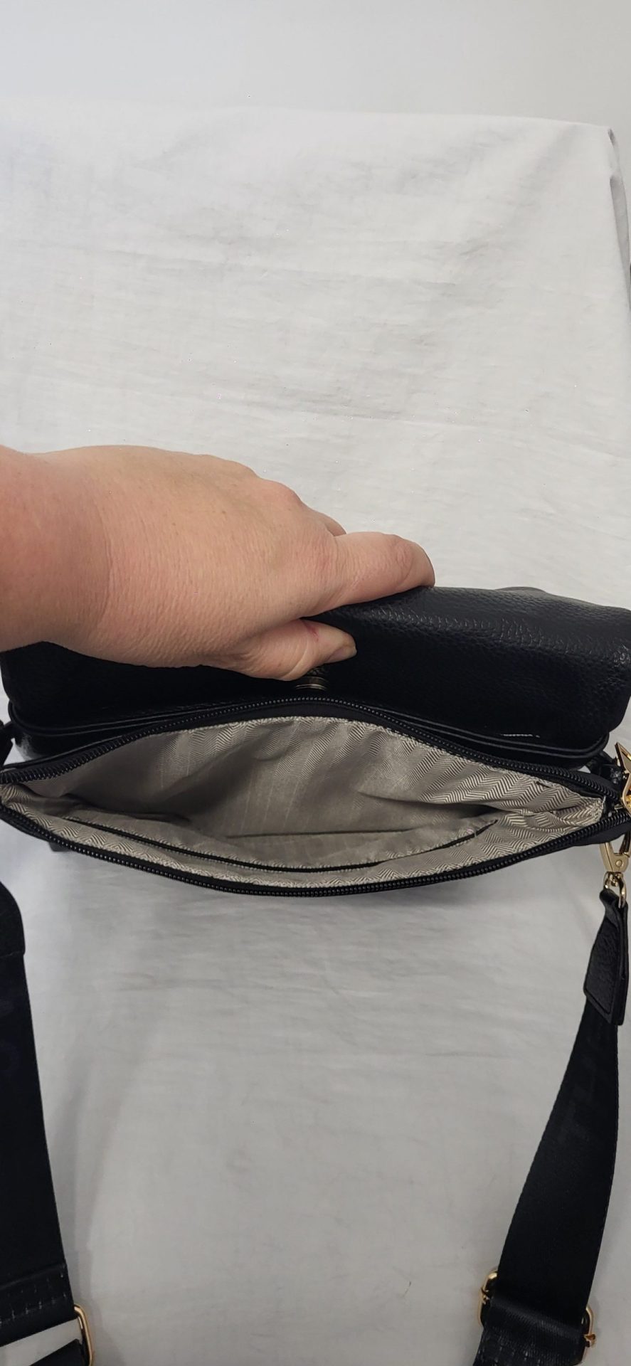- Adjustable crossbody canvas strap