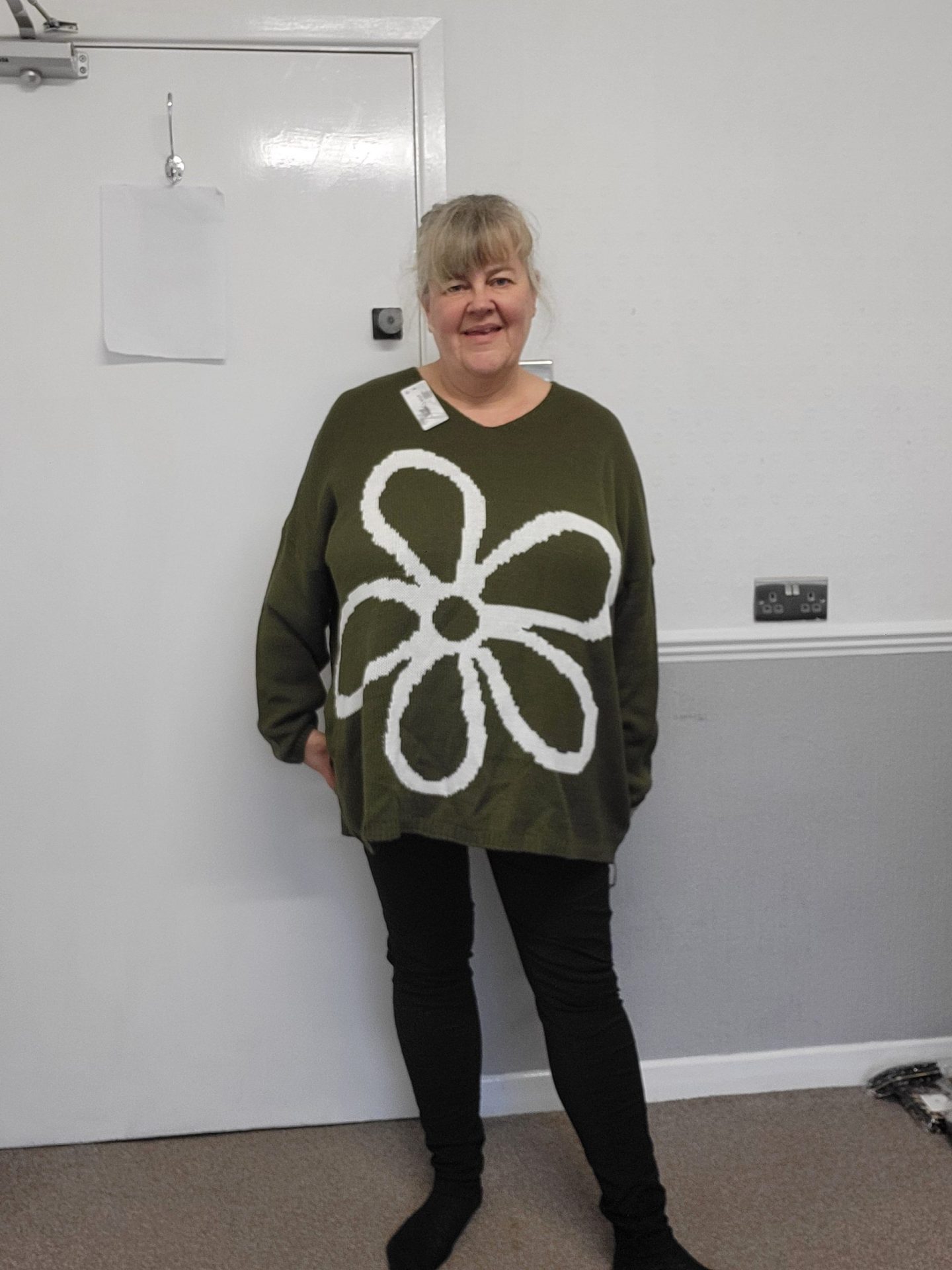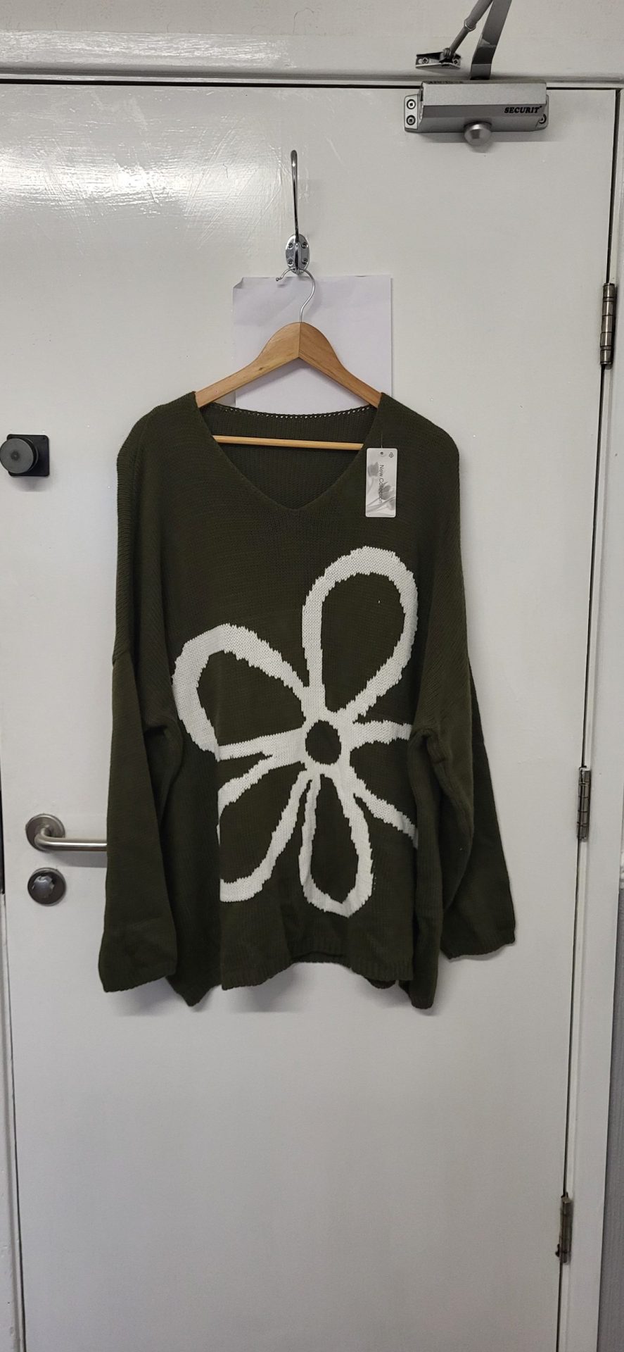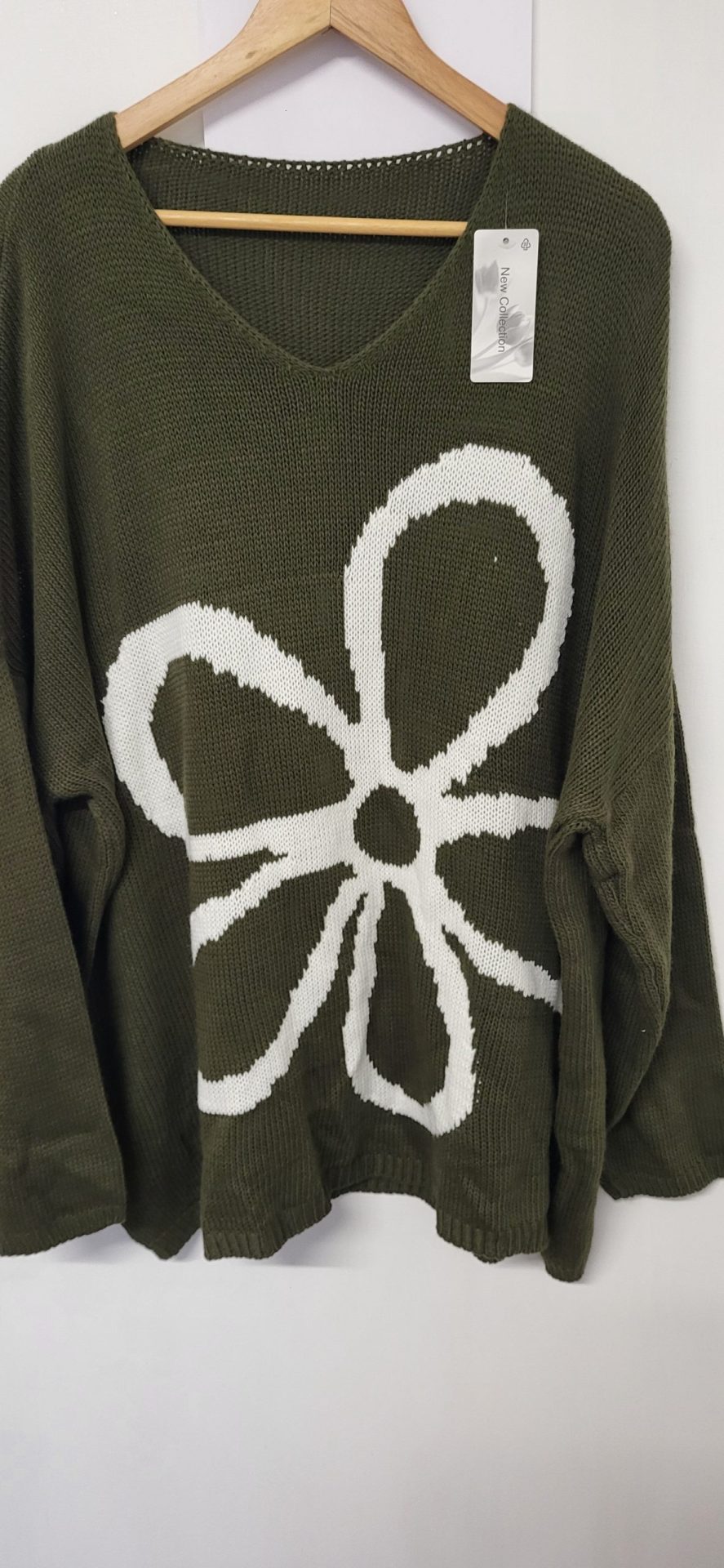 NEW Ladies Khaki Flower Jumper One Size Fits 20 22