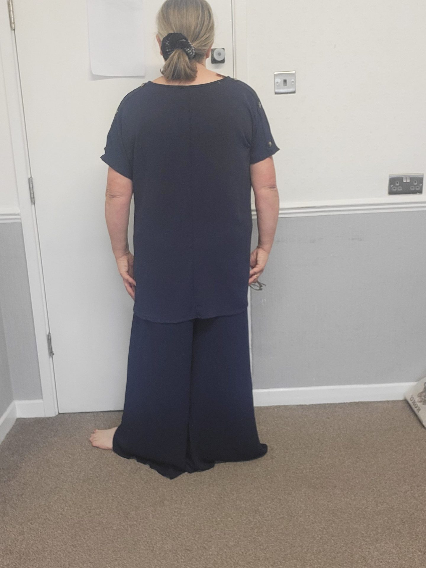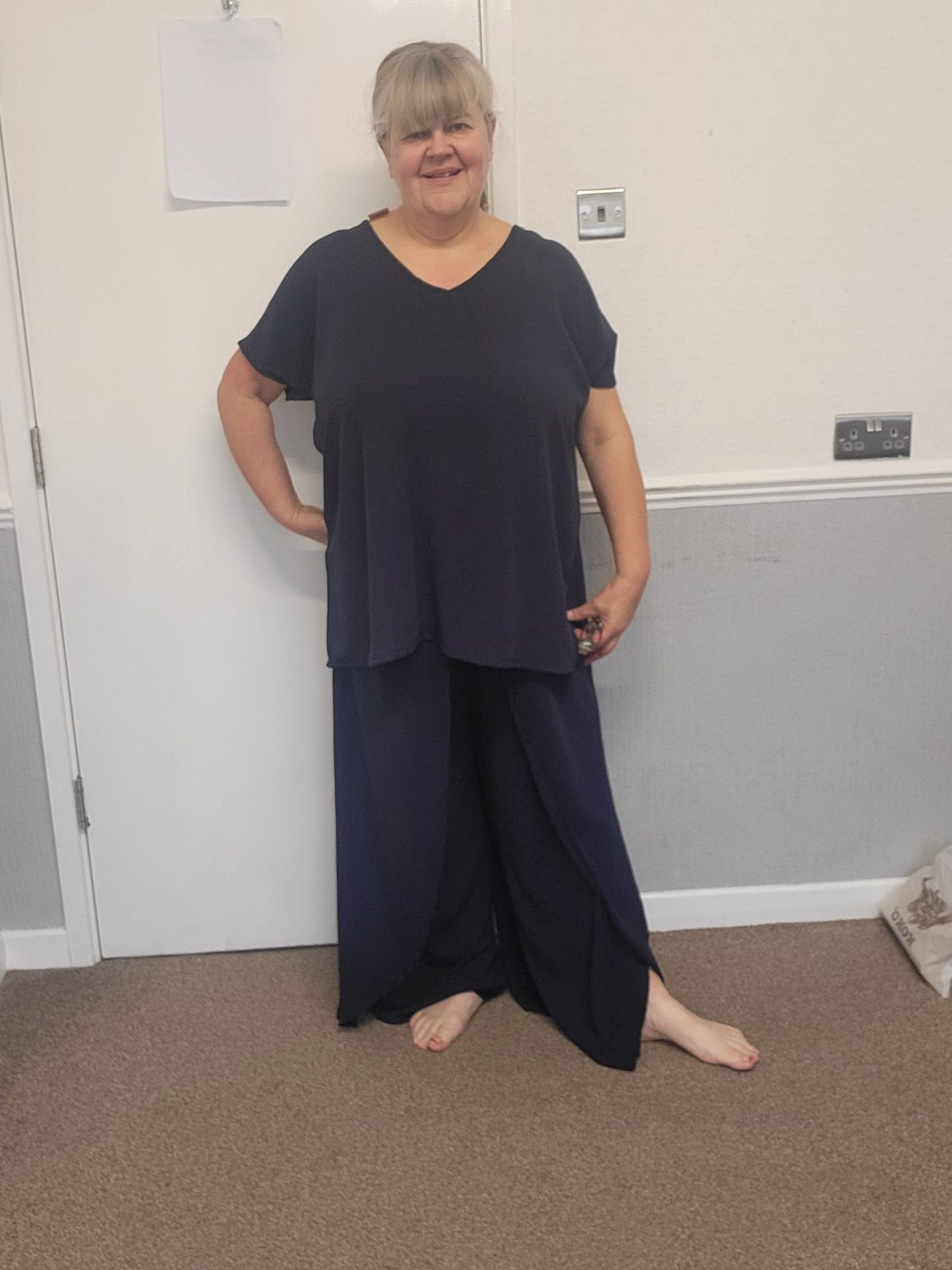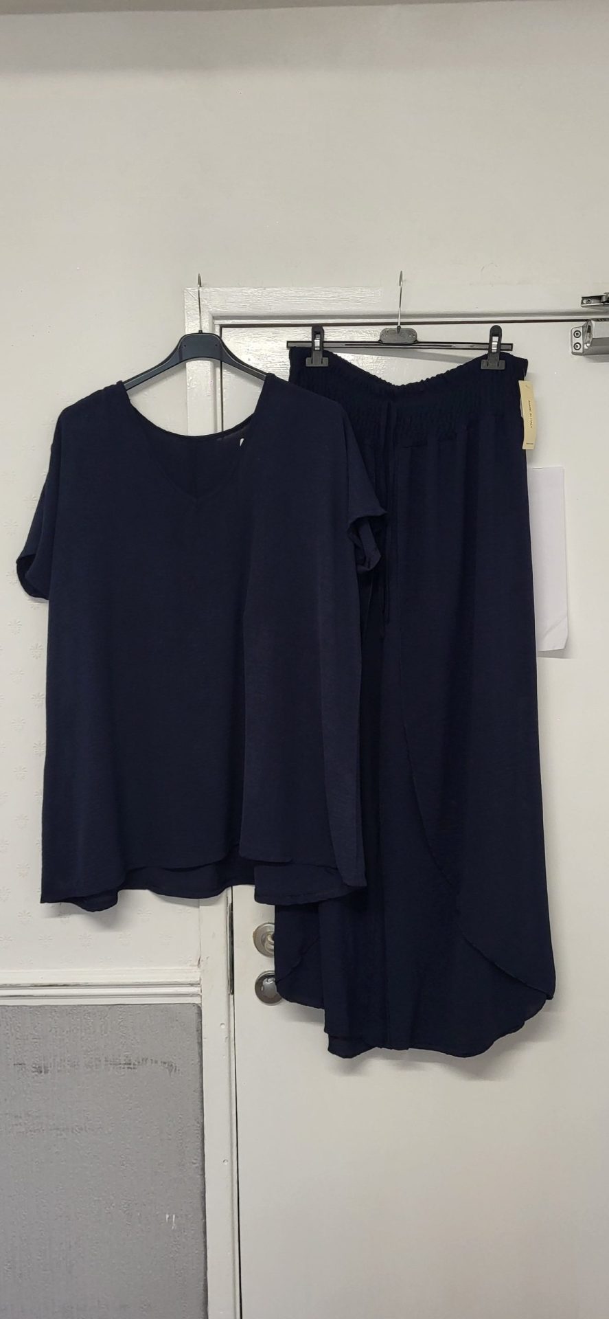 Lovely trousers and top set. No pockets in this outfit.