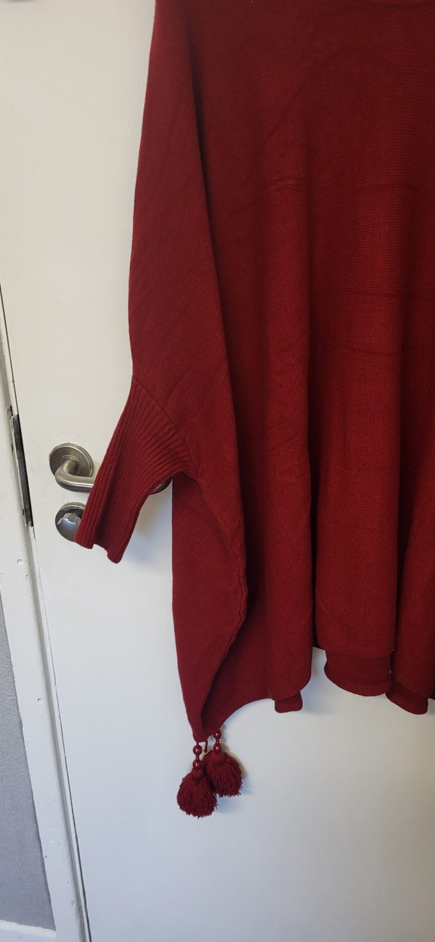 NEW Wine Cowl Neck Tassel Soft Poncho Jumper One size fits sizes 18 20 22 24 26 28